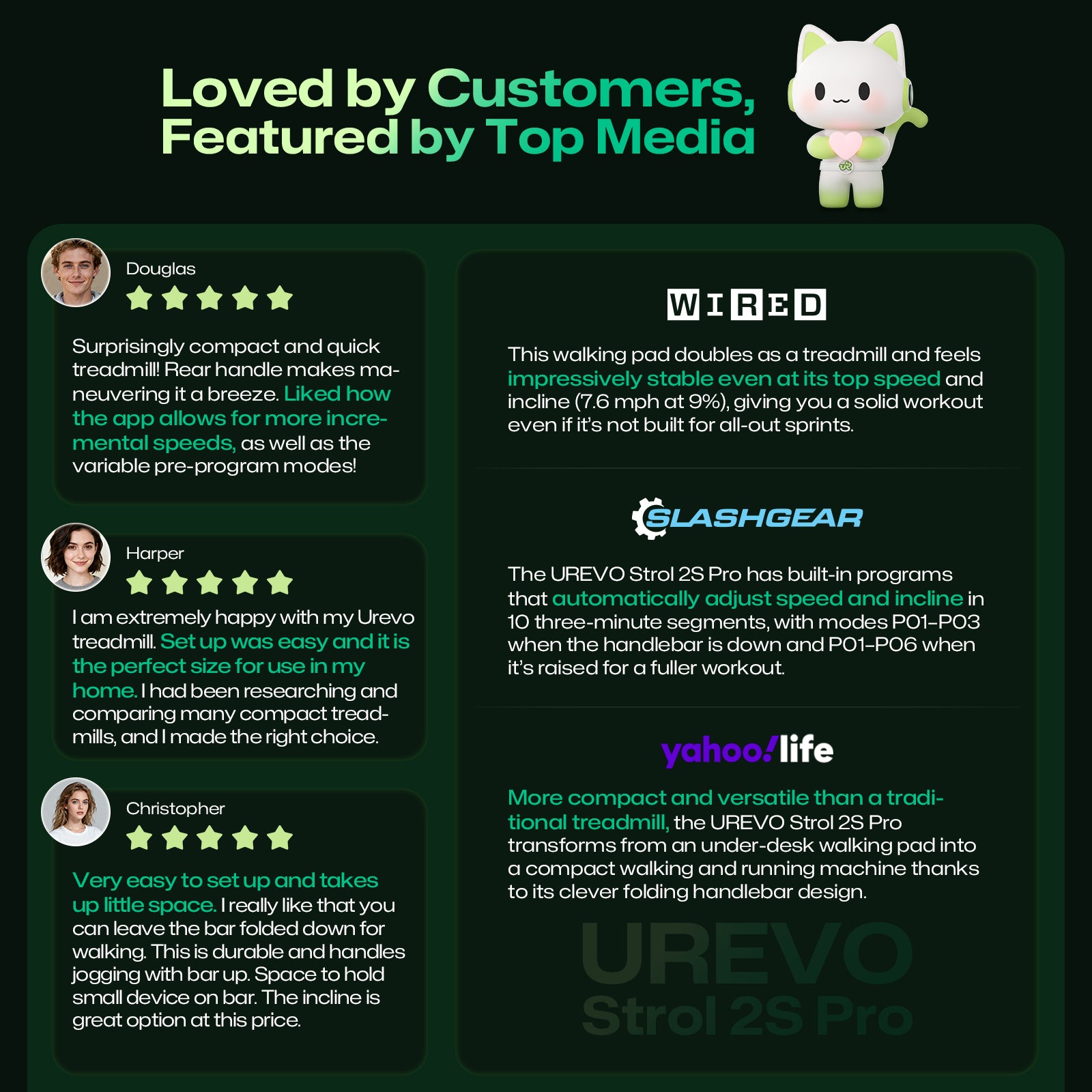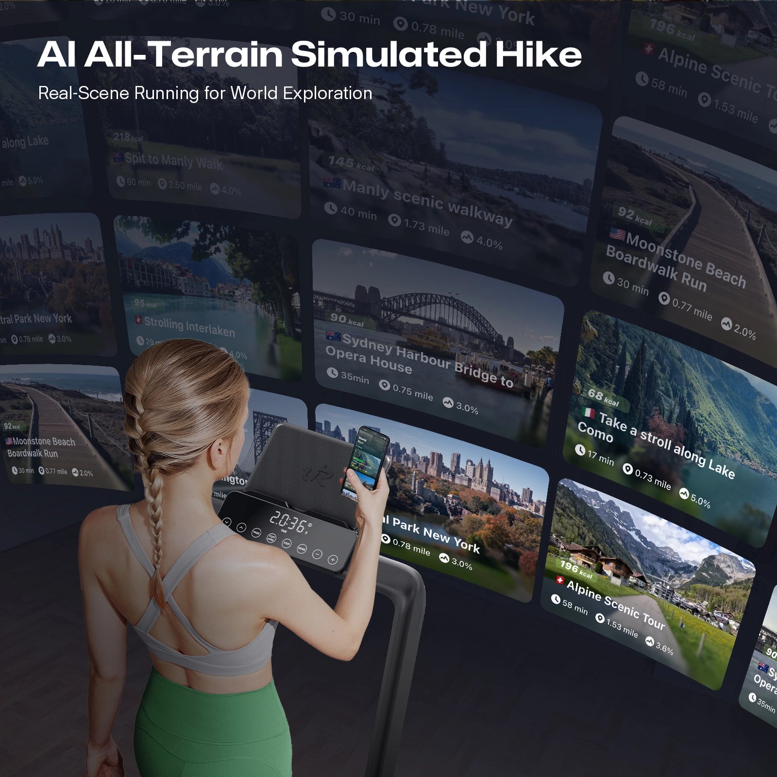 - Smart Connectivity: Connect with the UREVO App to enjoy a virtual city experience and the thrilling challenge mode. Also, you can track your workout details and elevate your exercise experience with this smart treadmill.