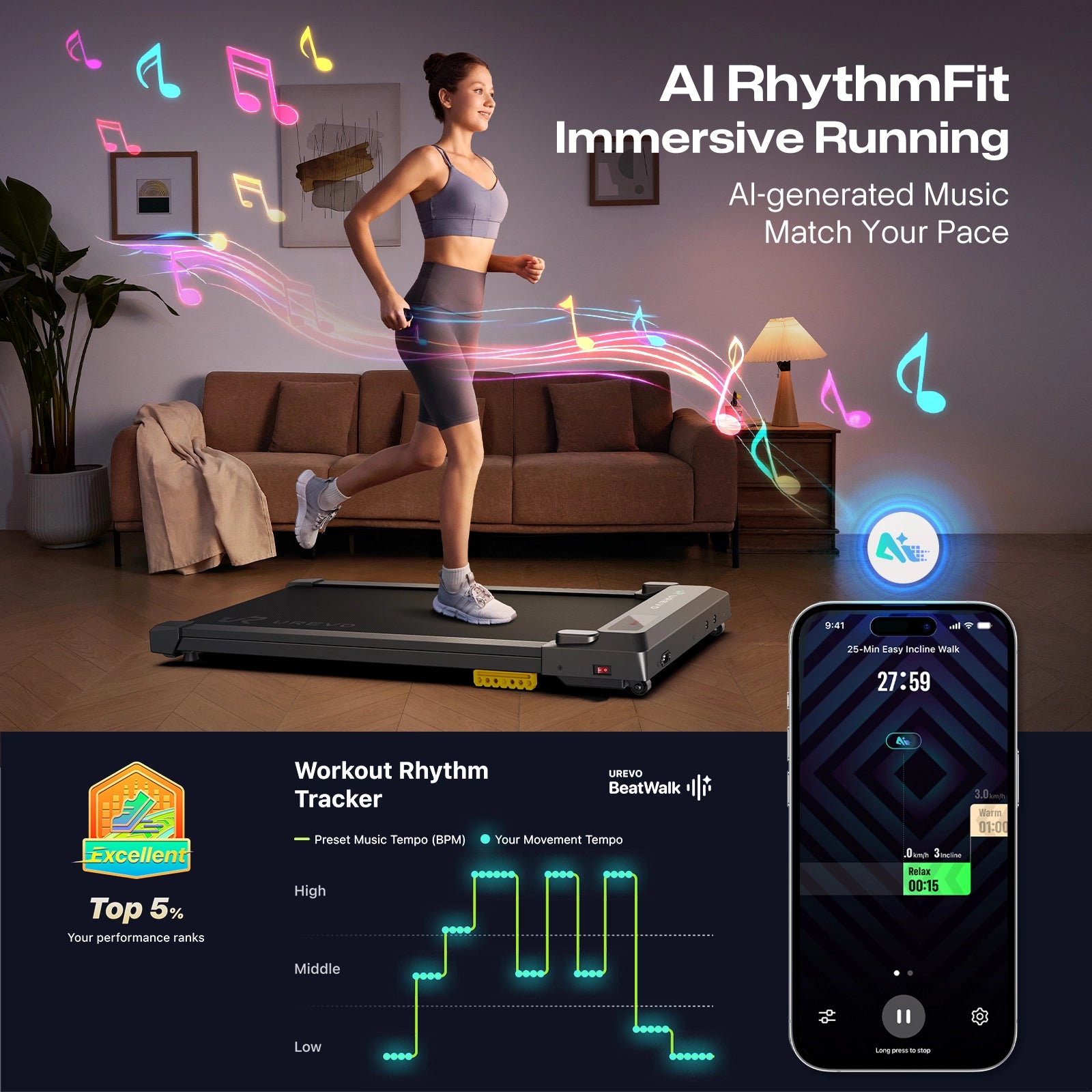 - Powerful & Quiet 2.5 HorsePower: Experience the UREVO Walking Pad, an under desk treadmill with a robust 2.5 HP quiet motor that supports up to 265 lbs weight capacity. Engineered for minimal noise, it's perfect for home and office use, allowing you to stay active without disturbing your surroundings.
