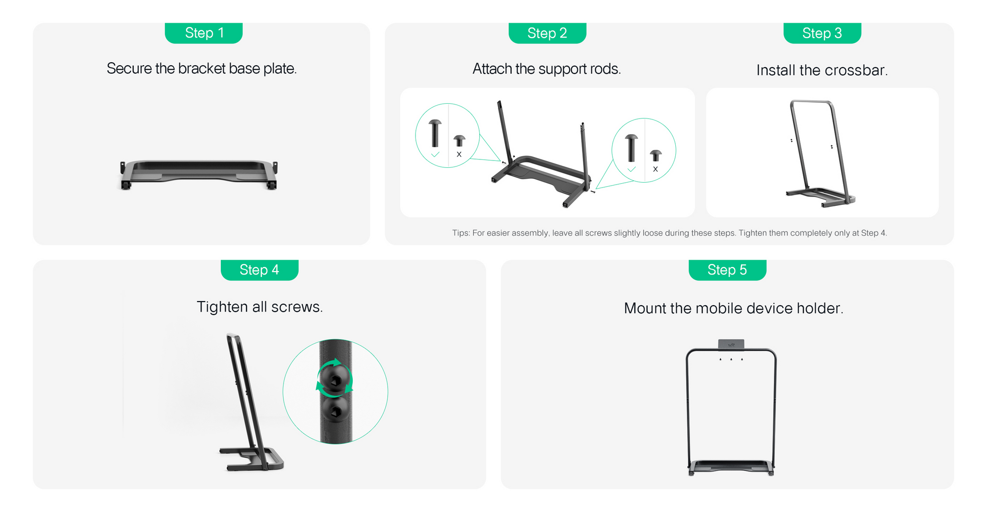 *Tips: For easier assembly, leave all screws slightly loose during these steps. Tighten them completely only at Step 4.
